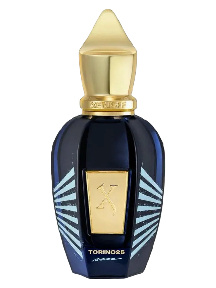 Torino25 de Xerjoff es una fragancia de la familia olfativa Oriental Especiada para Hombres y Mujeres. Esta fragrancia es nueva. Torino25 se lanzó en 2025. Las Notas de Salida son ruibarbo, toronja (pomelo), azafrán y jengibre; las Notas de Corazón son gamuza, enebro y cuero; las Notas de Fondo son ámbar, vetiver y almizcle.